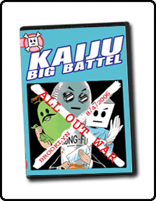When Pablo Plantain suffered a fruital fatality at Someone Must Die!, Kaiju Big Battel changed forever. Many believed that Dr. Cube had finally gone too far, but who could stop him? With the loss of Pablo to the grim grocer, and the treacherous Silver Potato joining Cube’s Posse, the Kaiju Heroes appeared to be going down the one-way drain of the Kaiju toilet. The Kaiju Heroes were not ready to succumb to the sewage suckage however, and accepted Dr. Cube’s declaration of All Out War! Before a sold-out crowd at the Warsaw in Brooklyn, a legion of fans were treated to an epic night of Big Battels that would mark the rise of the Heroes out of the Kaiju dumper and back into the Big Battel limelight.