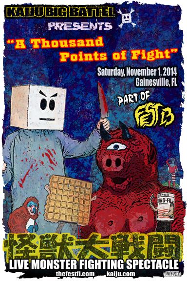 That’s right Kaiju Big Battel is heading to Florida for the first time. We will be in Tampa, Oct 30, Orlando, Oct 31, Gainesville as part of, FEST13 on Nov 1, and Jacksonville, Nov 2,
