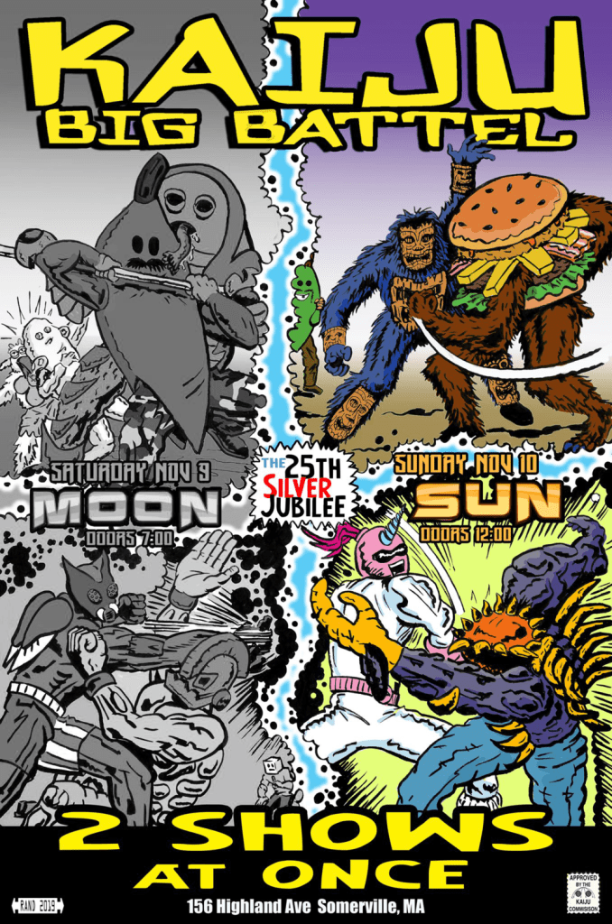 The shocking second part of our monstrous weekend at the Once Ballroom in Somerville, MA. A rare daytime appearance for the Kaiju roster with a remix of matchups and the veteran hero, Sunbuster, taking on the only enemy worse than Dr. Cube… the evil Double Unicorn Dark.
