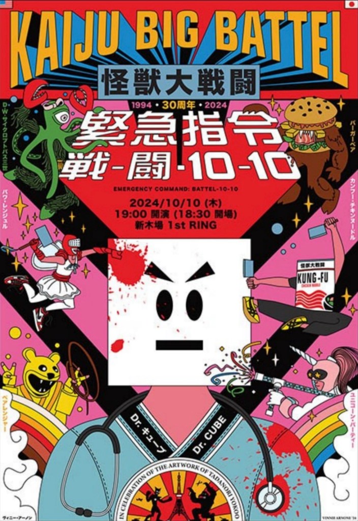 Launched in 1994, “Kaiju Big Battel” is a public fight event planned by the Kaiju Commissioners of the Kaiju Regulatory Committee (KRC) to protect the safety of the Earth from evil Kaiju scattered throughout the galaxy and the schemes of Dr. Cube, a genius who creates Kaiju created by Nazi biological experiments. This