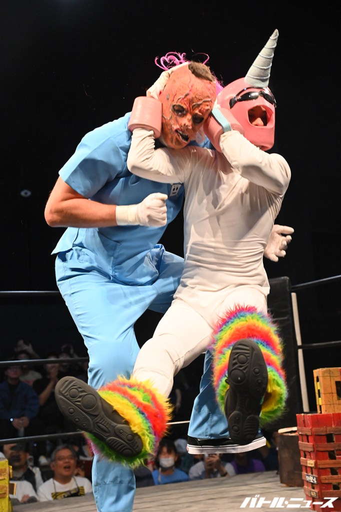 The Unicorn Party entered the ring with a treasure chest, and it seemed that they had found a treasure hidden in Shinkiba 1st RING.