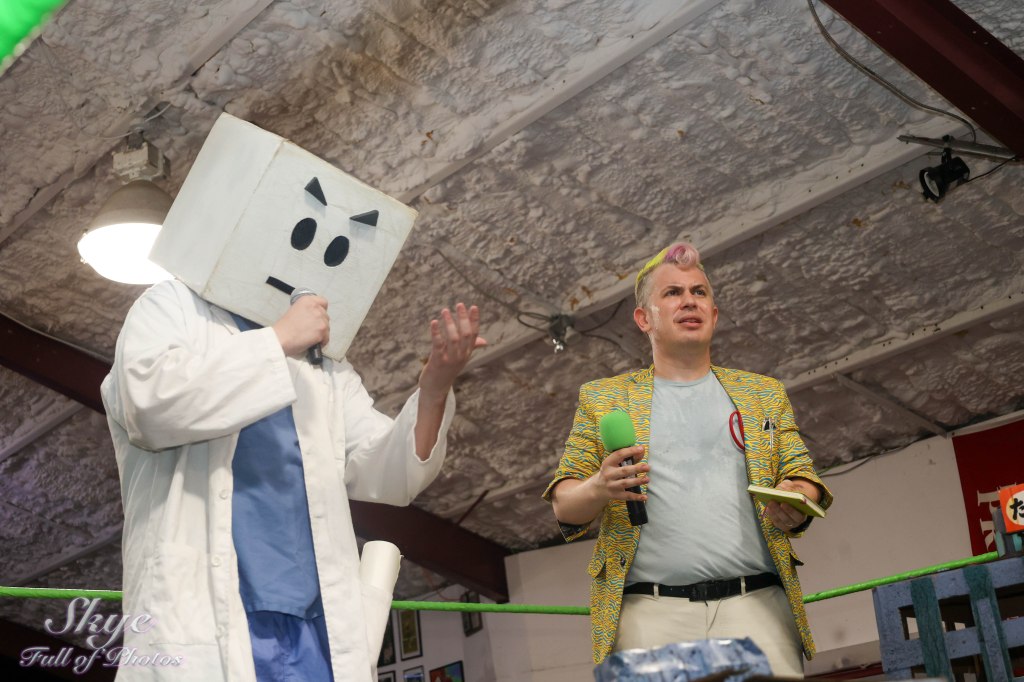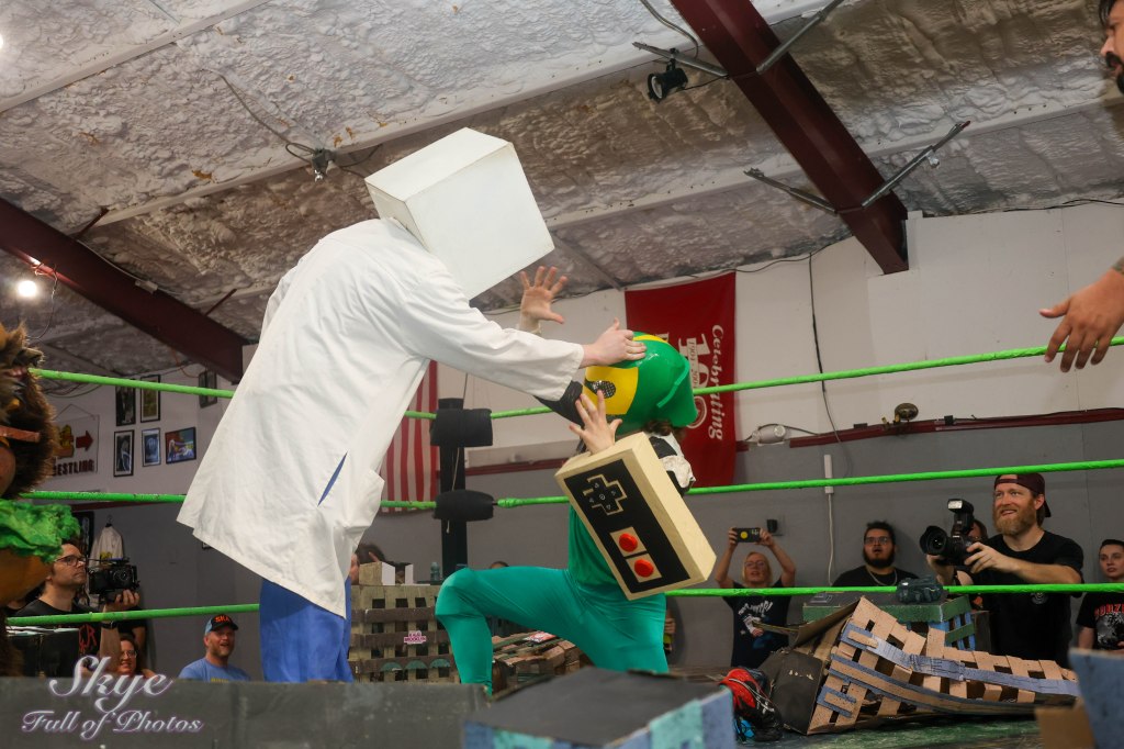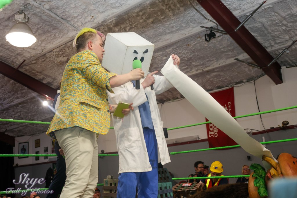 • During intermission, Dr. Cube announces that, according to his lawyers, the deed to the Monster Factory must be won in a fighto, and issues an OPEN CHALLENGE!