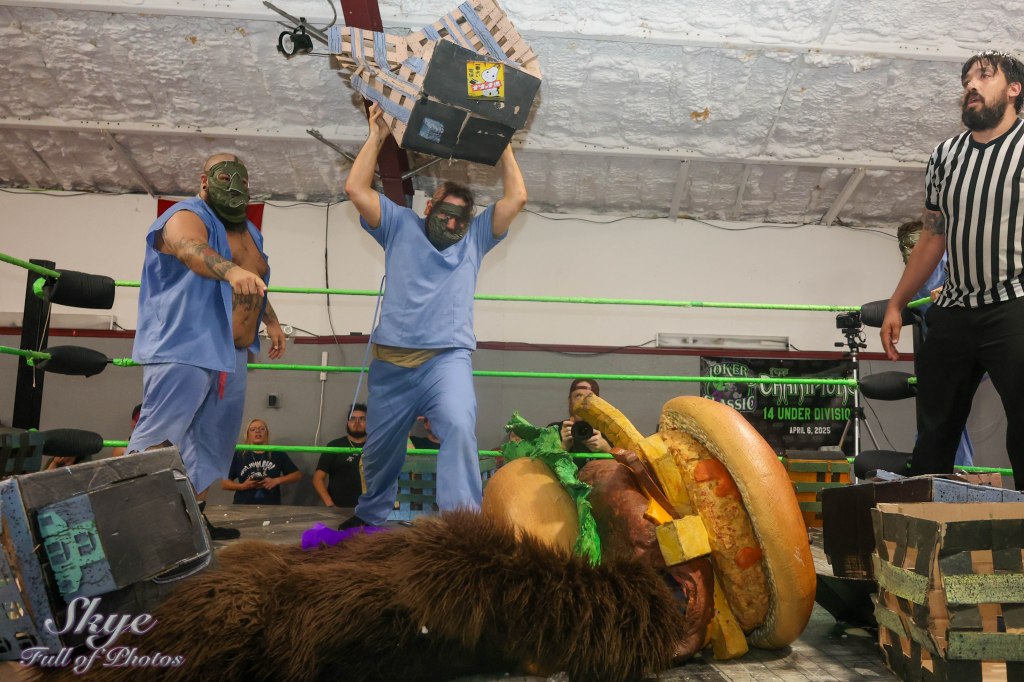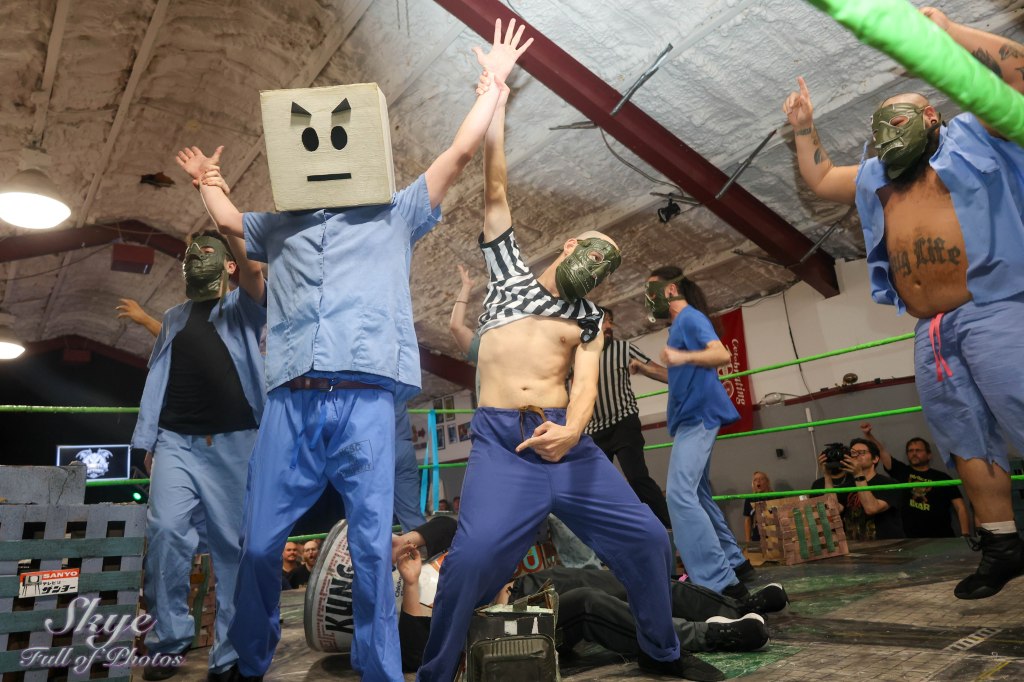 Cube and his minions rush the ring and overwhelm Burger Bear.