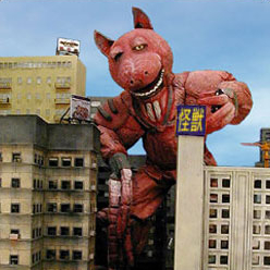 In many ways Multimoog served as a trailblazer for todayÕs trash based Posse member Gomi-man. Dr. Cube cobbled together the 550 meter monstrosity from discarded Portuguese sailor parts. While most humans and Kaiju combatants feared Multimoog, some recycling-loving-tree-huggers lauded Cube’s adoption of the Reduce, Reuse, Recycle principle.