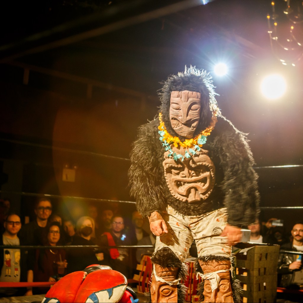 As fate would have it, that full moon came a-calling, and that cursed trinket decided it had waited long enough. With a flash and a bang, it exploded into bits. Lo and behold, from the mess emerged Tikirilla – a fearsome beast; part tiki, part gorilla, all monster and ready to lay waste to Kauhale Mauna Keoke.